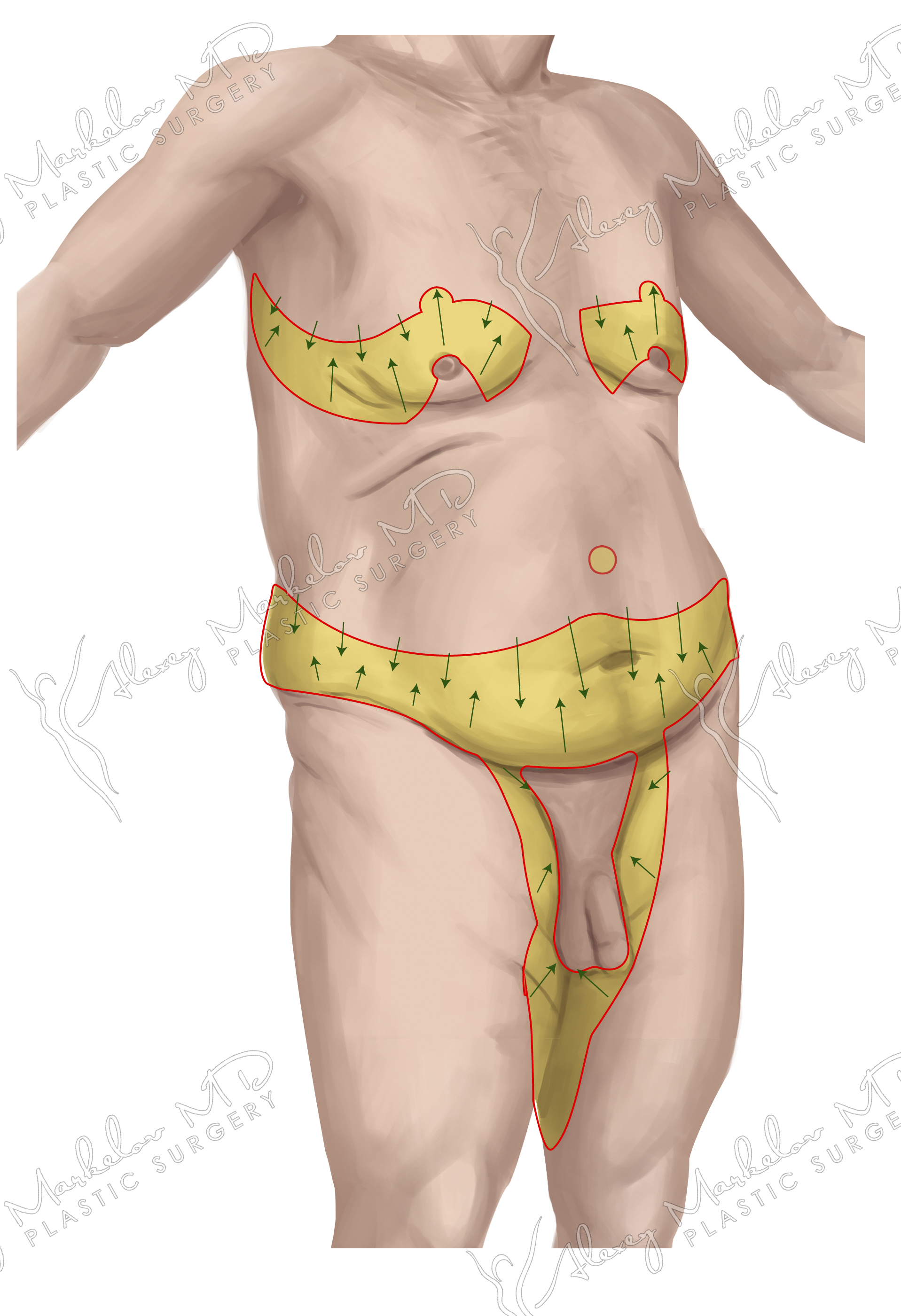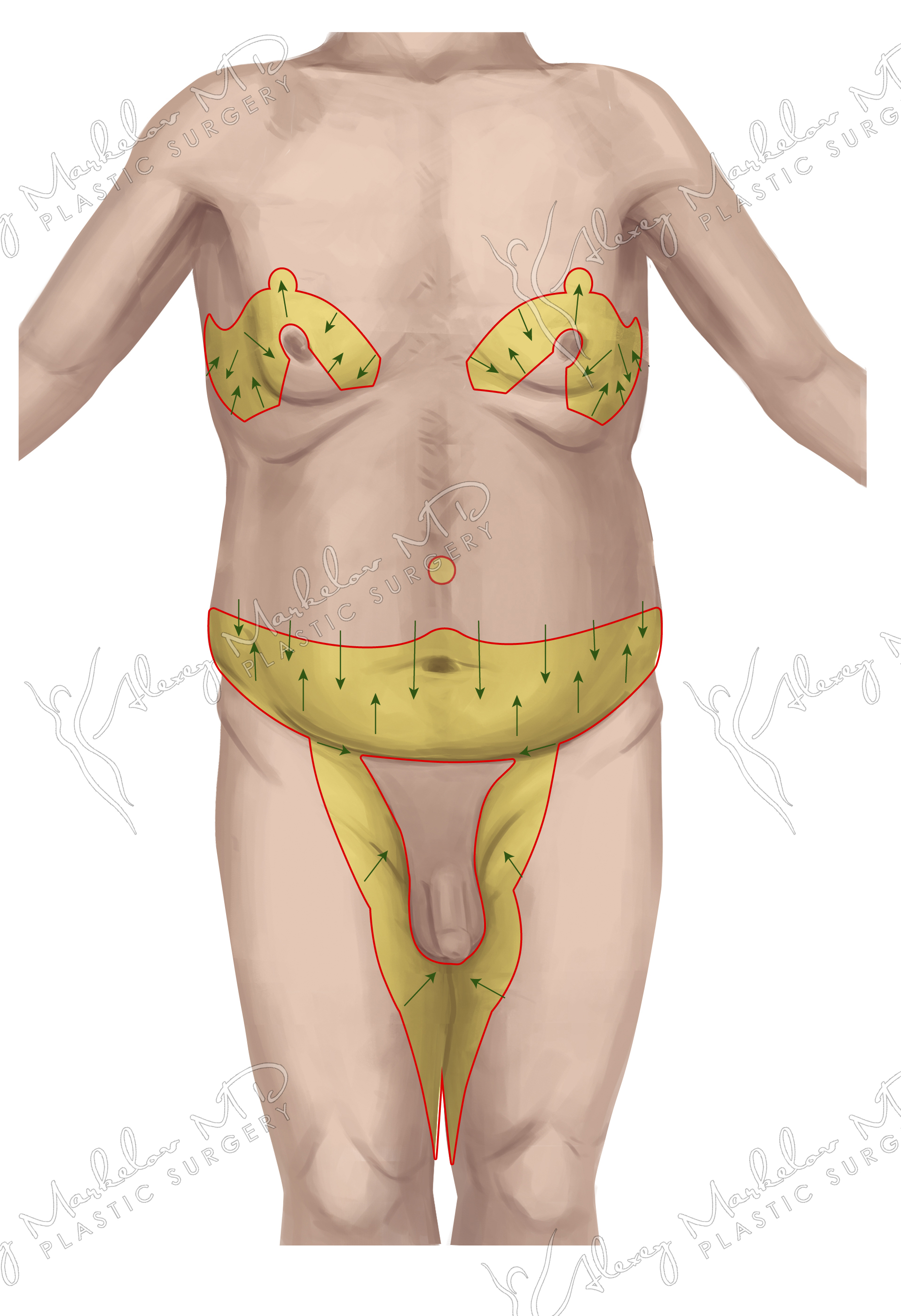FAT REMOVAL (LIPOSUCTION) is the most effective surgical procedure to treat areas with excessive fat deposits. Liposuction is the most popular method of body contouring surgery because it allows the surgeon to re-sculpt specific areas of the body. Using only a few tiny incisions, your surgeon can target stubborn fat deposits and permanently remove fat cells from the area. There are many different methods of liposuction available, and Dr. Markelov will discuss which technique is right for you. Unlike other body contouring procedures, liposuction does not involve excess skin removal and is not an effective treatment for reducing cellulite.