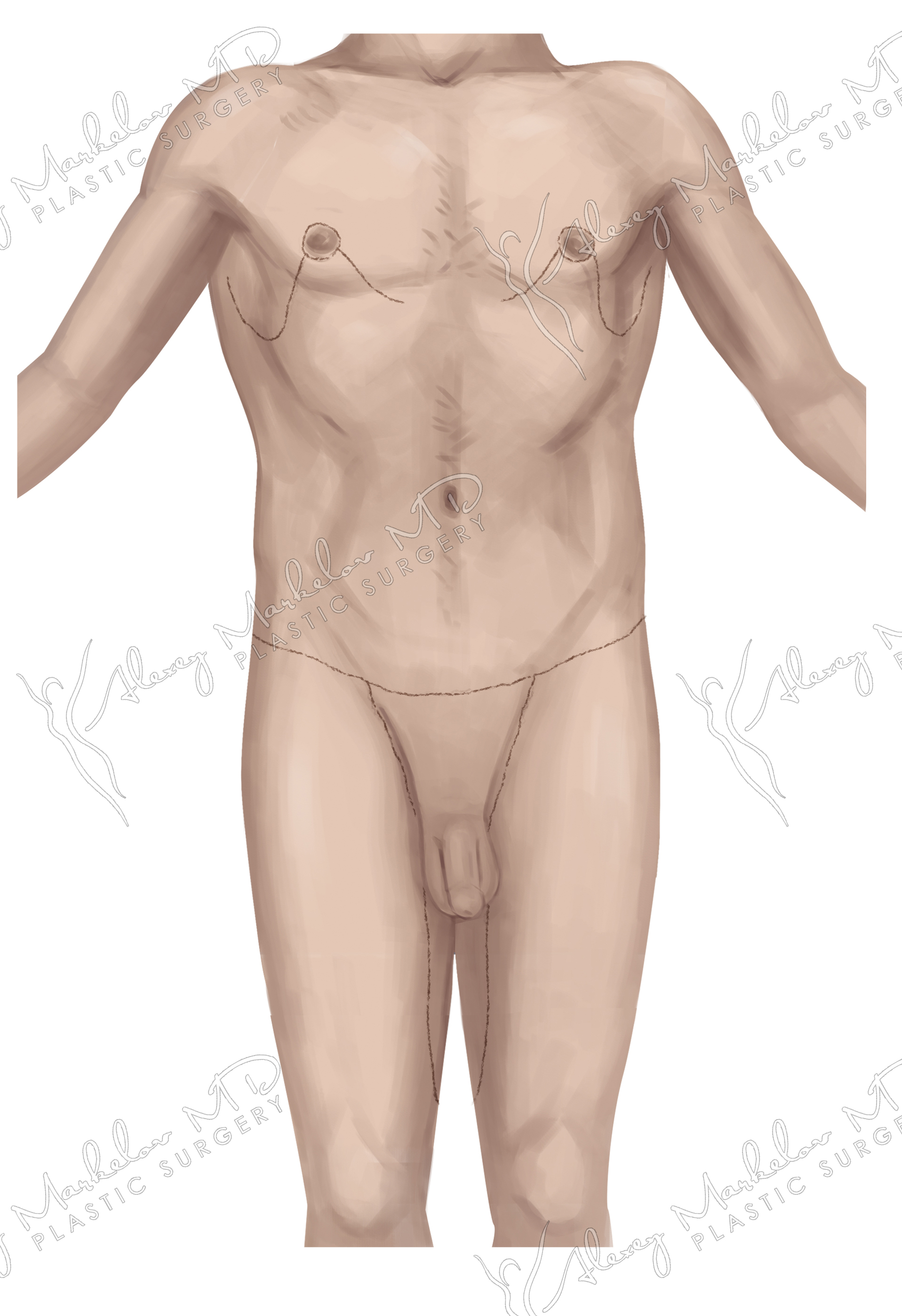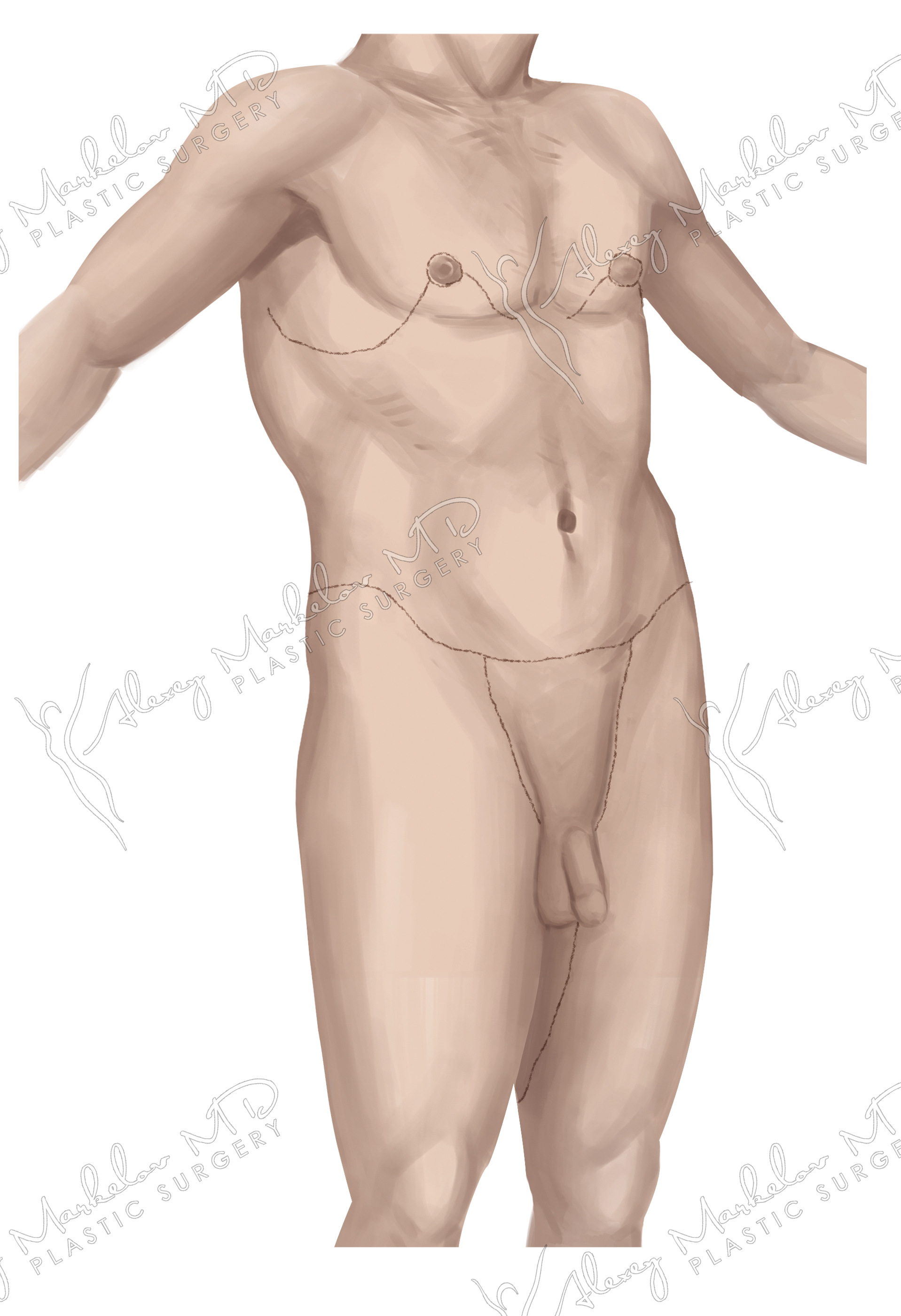 MALE BREAST REDUCTION – also known as a Gynecomastia – is a surgical procedure used to remove excessive breast tissue and achieve a smaller breast size. Disproportionately large breasts can cause insecurity in one’s appearance, as well as back pain and other physical discomforts. Most men who seek breast reductions do so to transform their breasts to become more balanced to their body sizes.